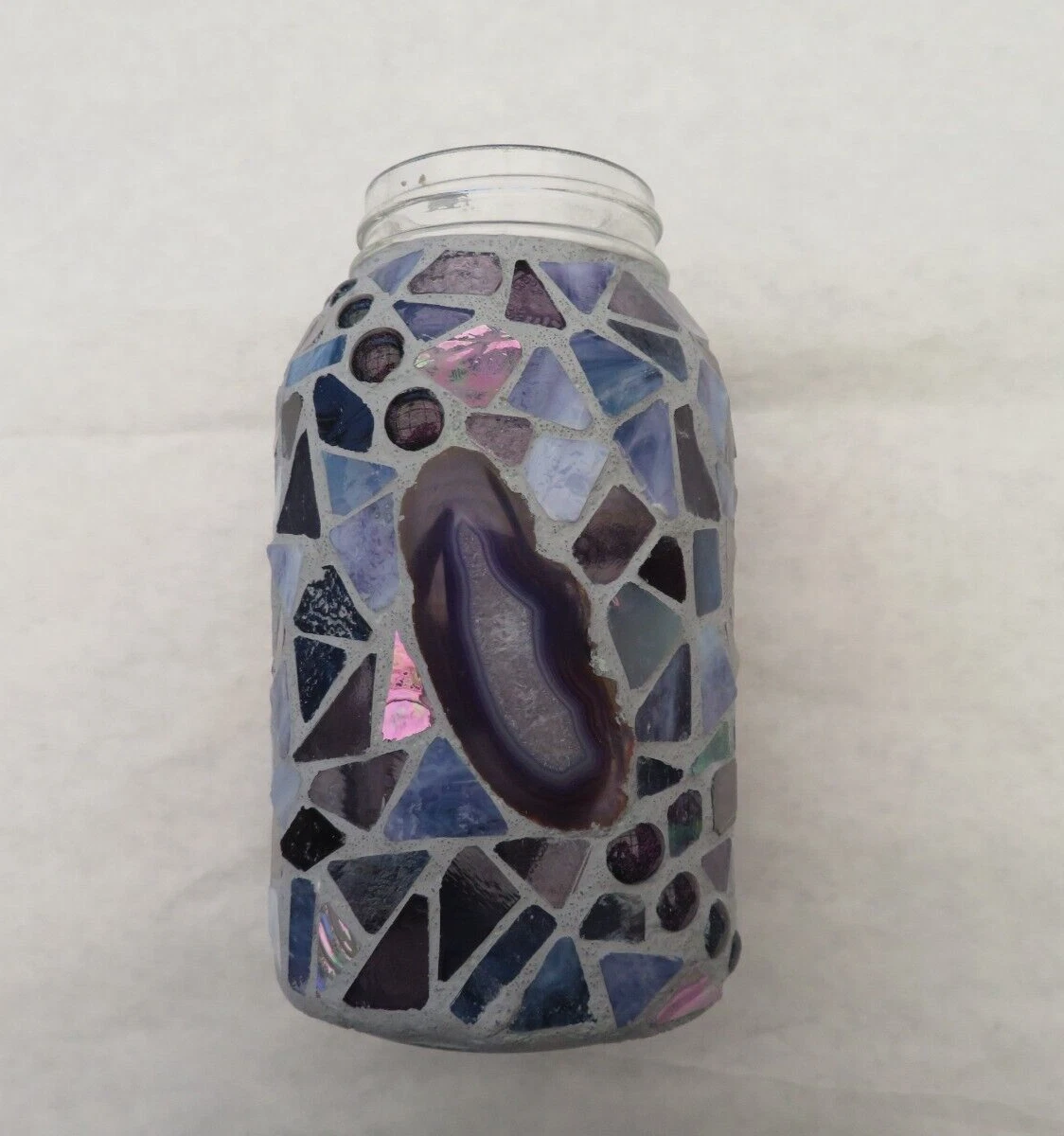 Handcrafted Mosaic Art Mason Jar Oil Lamp With Agates And Dichroic Glass New Ebay